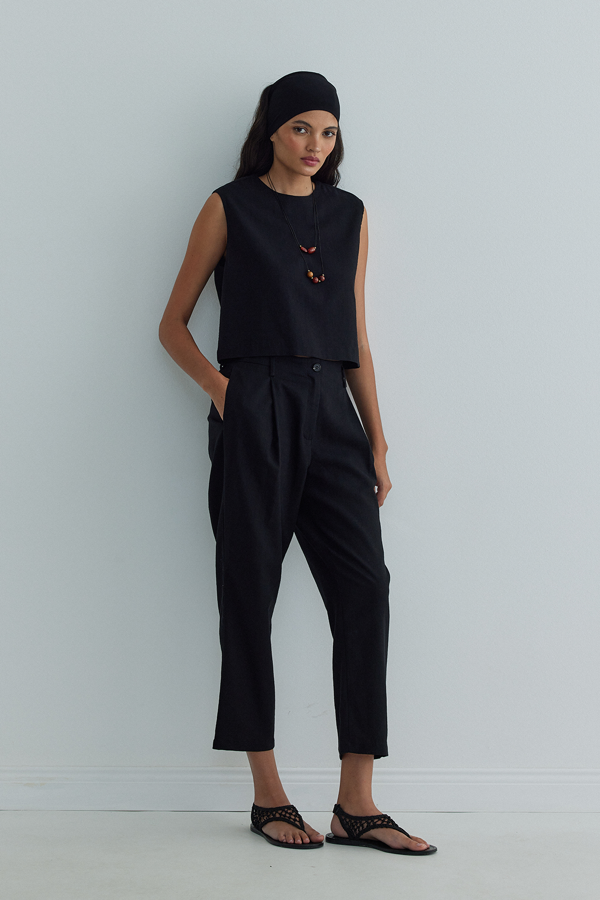 The Isla Pants highlight comfort with their carrot cut and breathable linen fabric, ensuring all-day ease. The pleat detail on the front lends a long and elegant look to your legs. Pair the Lavin Linen Blouse with the Gabriel Linen Blazer to achieve a coordinated look.