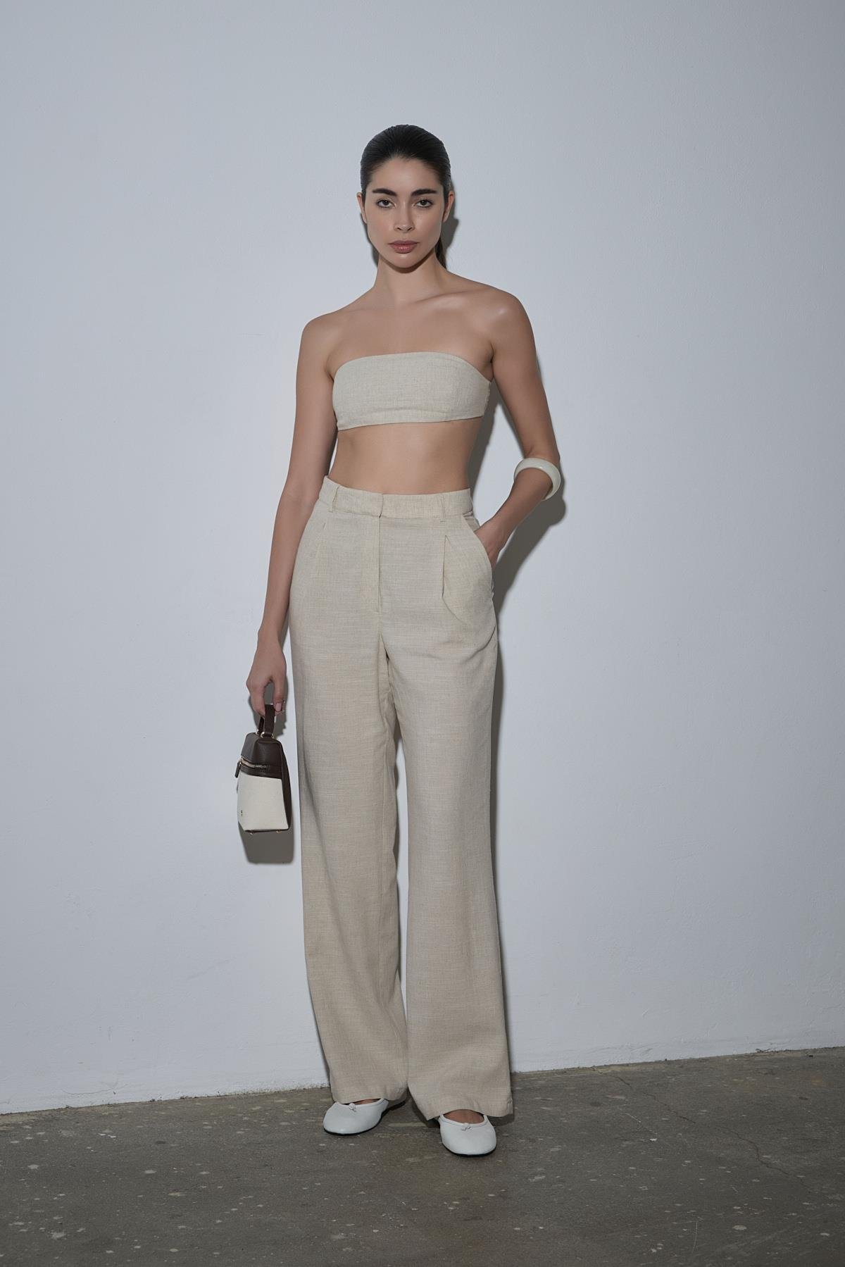 Natürel Gabriel Tek Pileli Keten Pantolon