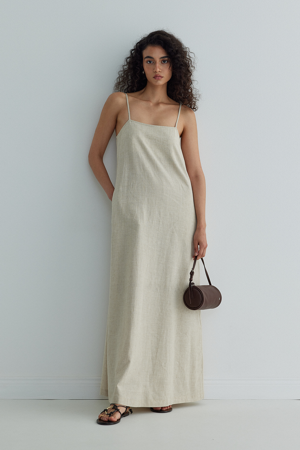 Nice Askılı Keten Jile, giy-çık kolaylığı sağlayan pratik bu tek parça elbiseyi topuklu sandaletler ile akşam davetinde veya sandaletlerle günlük gezilerde rahatlıkla kullanabilirsin. Gardırobunun çok yönlü ve vazgeçilmez bir parçası haline gelecek bu elbiseyi Lal Baget Çanta ile tamamlayarak havalı bir sokak stilide oluşturabilirsin.