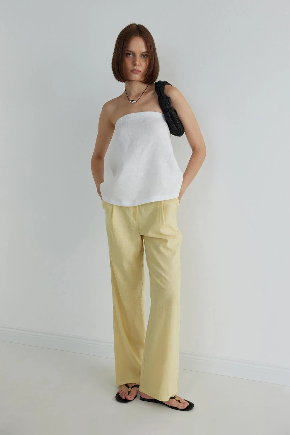 Sarı Gabriel Tek Pileli Keten Pantolon